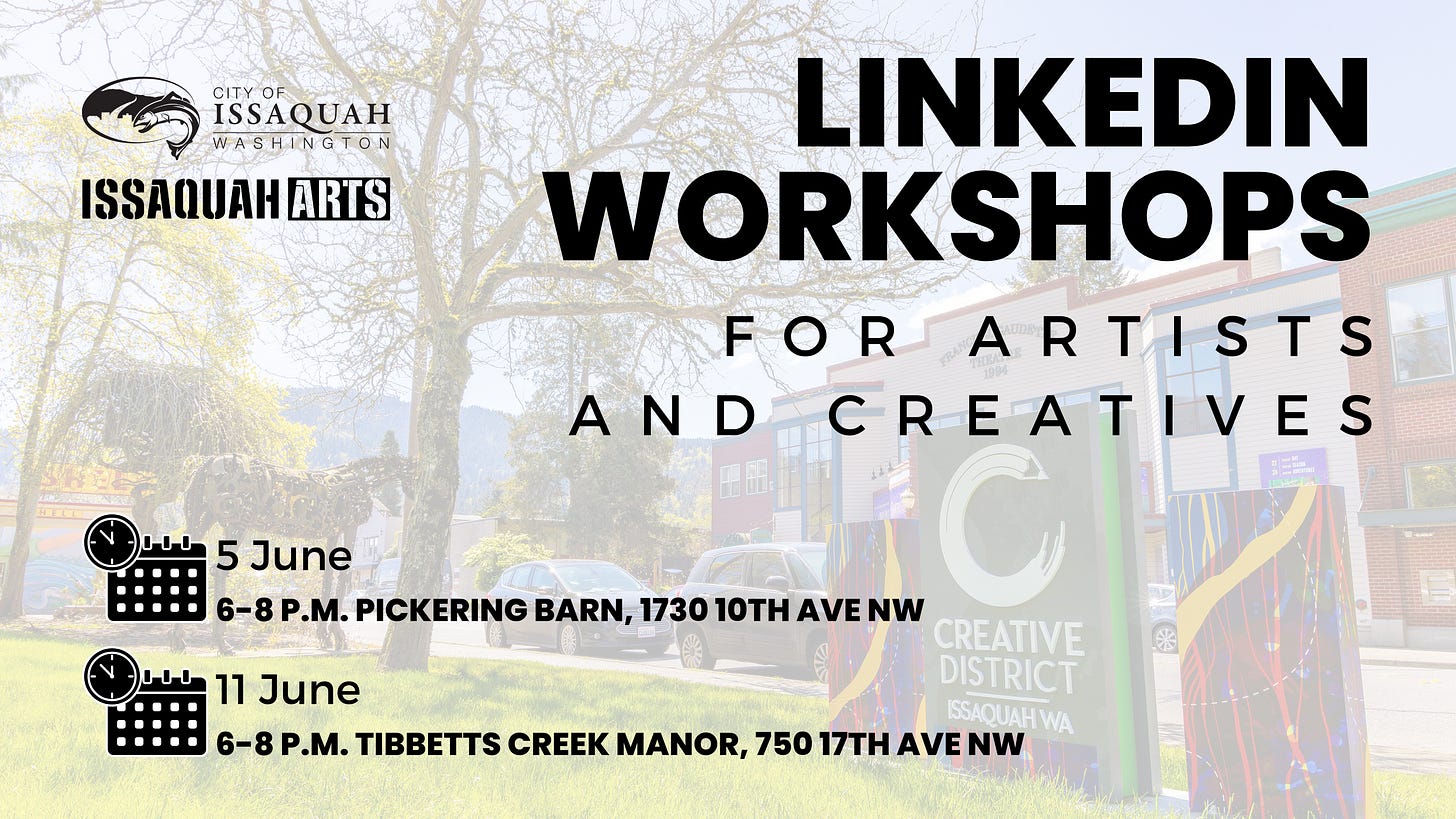And you’ll learn to navigate LinkedIn groups to join the Issaquah Arts Network, getting connected with local creatives, local events and opportunities in the arts
